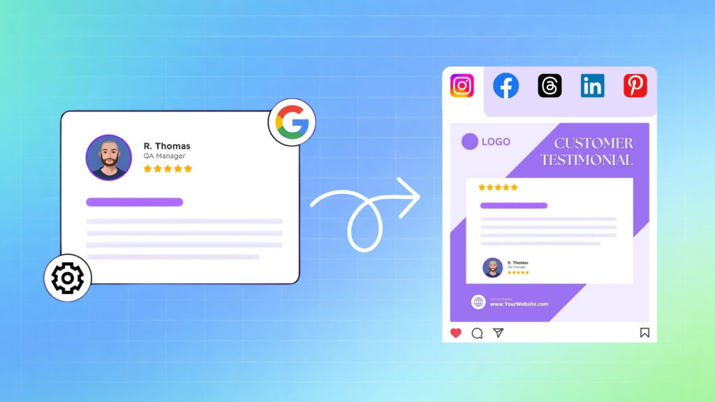 Connect your Google Business and social accounts to automatically share reviews on social media and display them on your website.